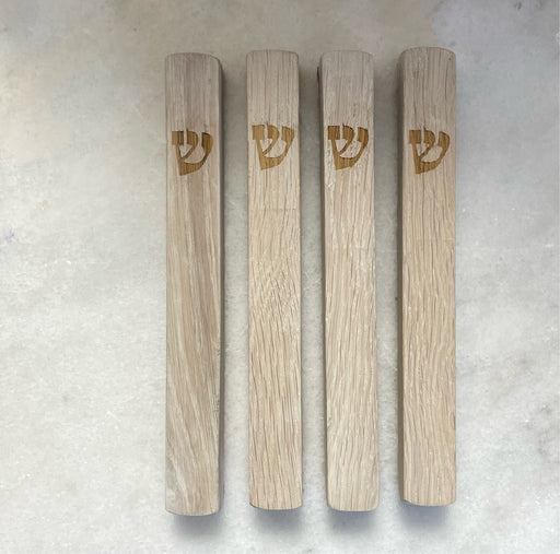 Whitewashed Oak mezuzah | engraved traditional shin