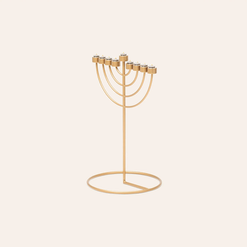 Inspired by the classical Menorah of the Temple in Jerusalem, this Radius Menorah mini features an elegantly curved design that embodies the Menorah's fundamental yet straightforward design. Its organic aesthetic allows it to blend with any style of décor and makes an excellent holiday gift for friends and family alike.
